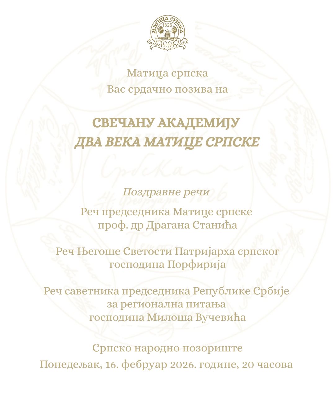 У Свечаној сали Матице српске, у среду 4. фебруара 2026. године, одржан је програм казивања поезије и подсећања на културно-историјске чињенице под насловом „Песници своме Летопису и својој Матици“. Овим песничким програмом, на посебан и свечан начин обележено је два века трајања Матице српске, а програм је био један у низу садржаја приређених поводом великог јубилеја.