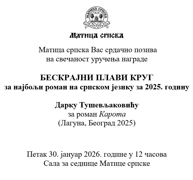 Уручење награде Бескрајни плави круг, 30.01.2026. у 12h