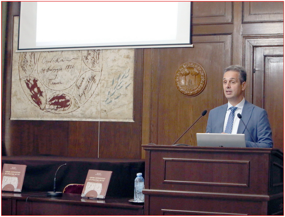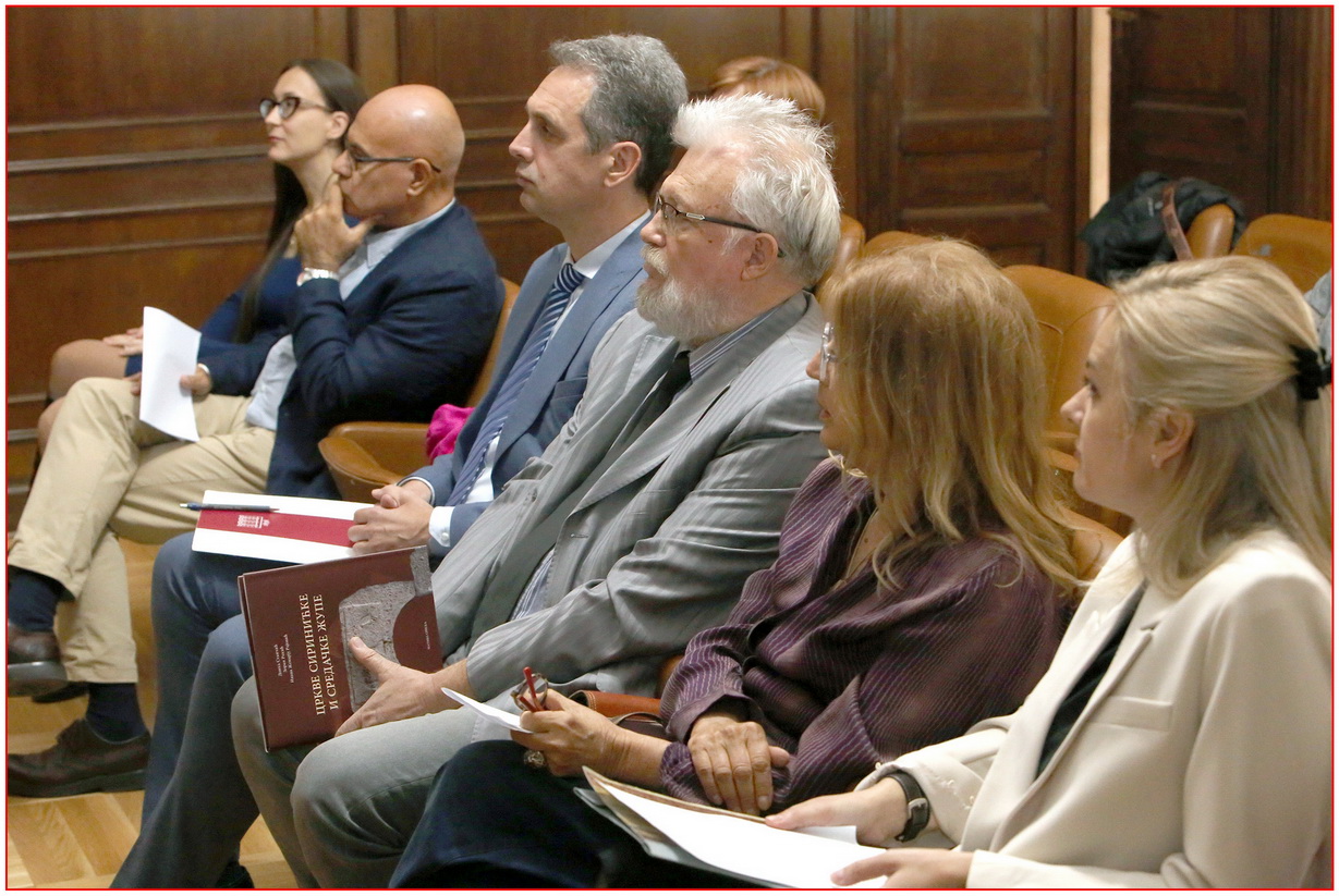 Пре самих аутора, публици се обратила др Бранка Гугољ, један од рецензената издања, која је у кратким цртама описала све сегменте књиге. Монографију је окарактерисала као „изузетно важну књигу која се односи на културно наслеђе Косова и Метохије“. У нашој јужној покрајини др Гугољ провела је три деценије свог радног века. Истакла је да, поред најзначајнијих и највидљивијих културних добара попут Грачанице и Дечана, мале цркве остају на маргини истраживања. Тих двадесет шест црквица Сиринићке и Средачке жупе, махом насталих после обнове Пећке патријаршије 1557. године, користиле су мале сеоске заједнице. Њихови ктитори били су сеоски житељи у сарадњи са свештеницима. Потреба за богослужењем била је највећи покретач ових подухвата који су скромне архитектуре и декорације, а опет тако значајни за изучавање начина живота и приоритета српског живља на Косову и Метохији. Тек после НАТО бомбардовања, 2000. године, покренута су озбиљнија истраживања сеоских цркава. Њих је тада спроводила непрофитна организација „Центар за очување наслеђа Косова и Метохије Mnemosyne“.