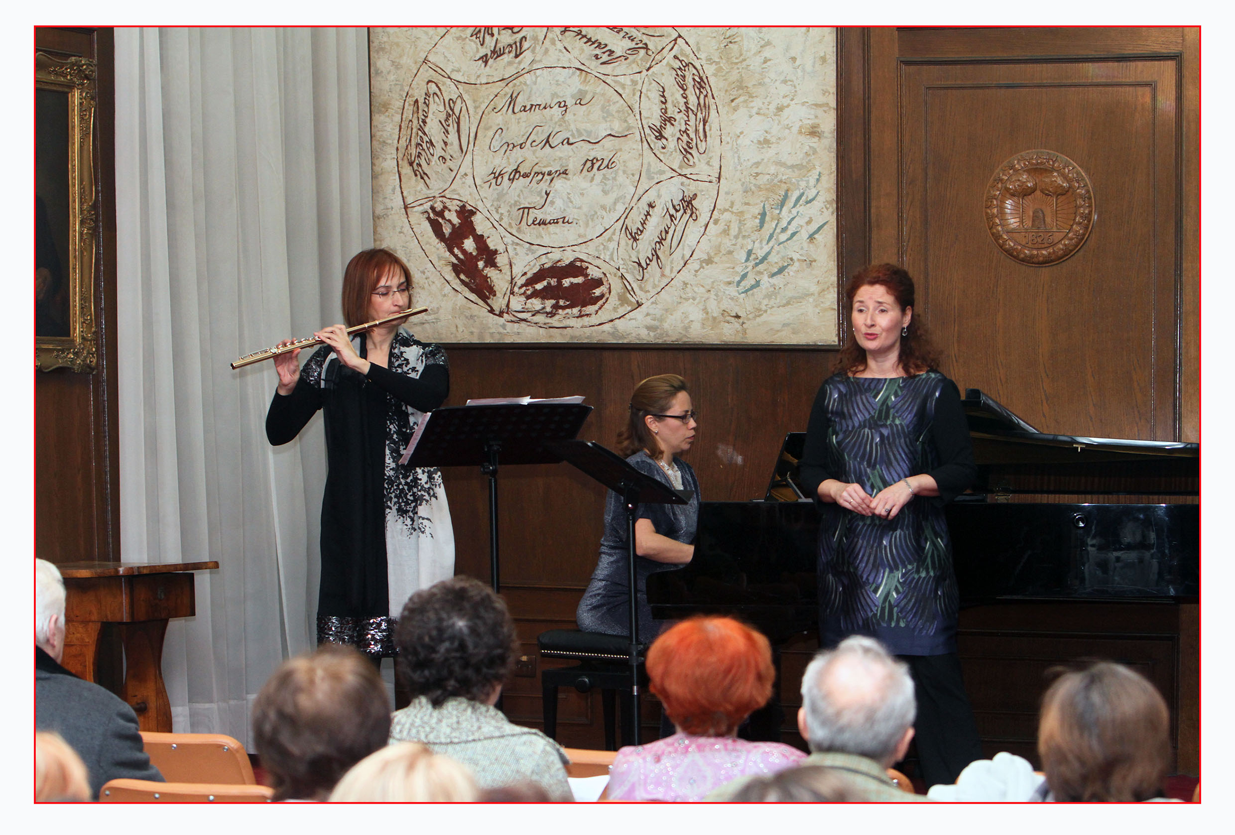 KoncertTroBelgrade_BLU00526. фебруара приређен је концерт  трија DONNE DI BELGRADO. Састав трија чине Анета Илић, сопран, Стана  Крстајић, флаута, Наталија Младеновић, клавир. Изведена су дела Т. Ђорданија, М. Равела, Л. Делибесa, А. Русела, Д. Деспића, И. Бркљачића, И. Жебељан и Д. Јовановић. Концерт је репортерски снимала РТВ и узела је изјаве уметница. Концерт је снимио  и фотограф Бранко Лучић.