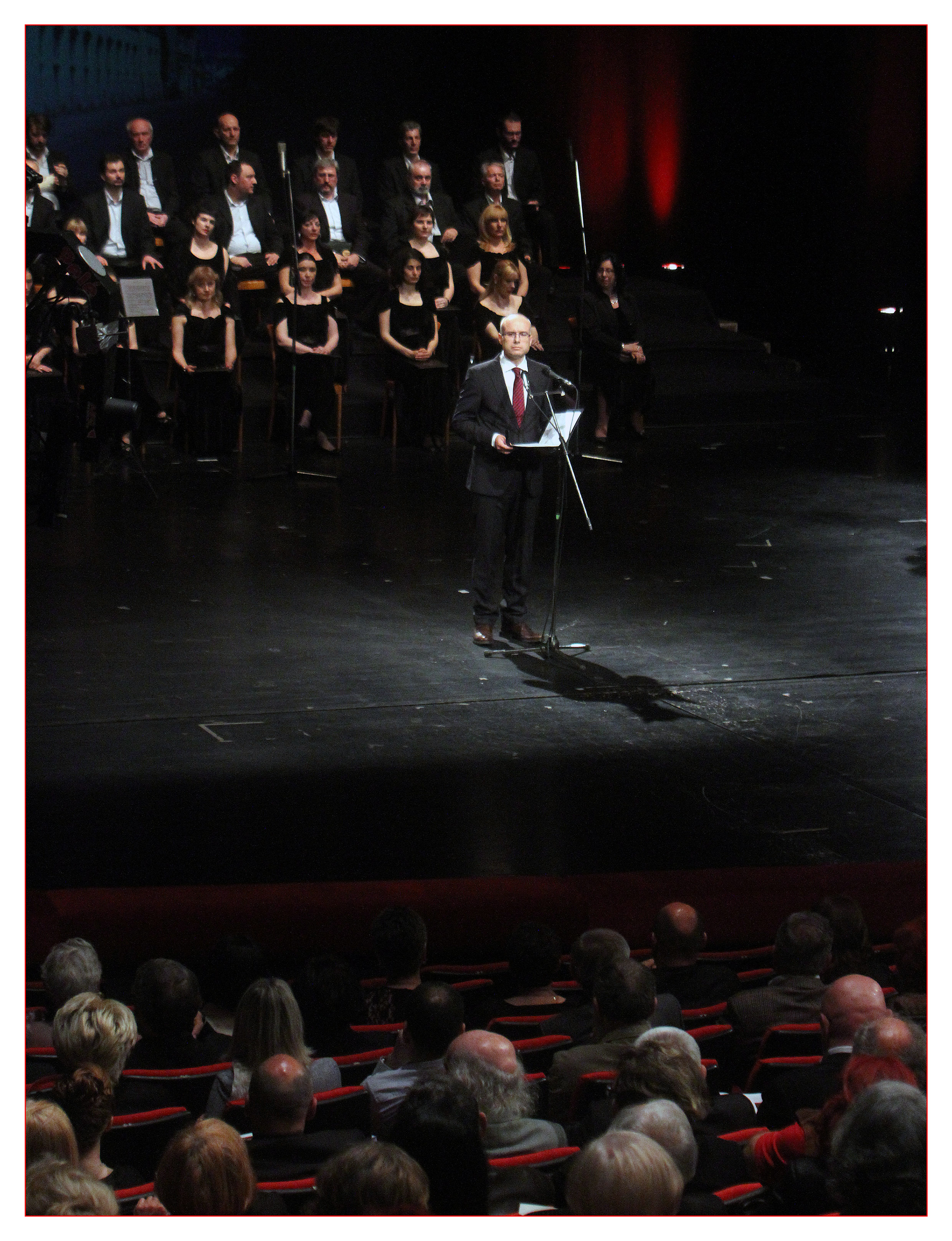 Поздравну реч бројној публици упутили су Његово преосвештенство др Иринеј Буловић, епископ новосадски и бачки, сомборски и сегедински, госпођа Јасмина Митровић Марић, у својству представника председника Републике Србије, господин Славиша Грујић, потпредседник Владе Војводине и покрајински секретар за културу и јавно информисање, те господин Милош Вучевић, градоначелник Новог Сада.