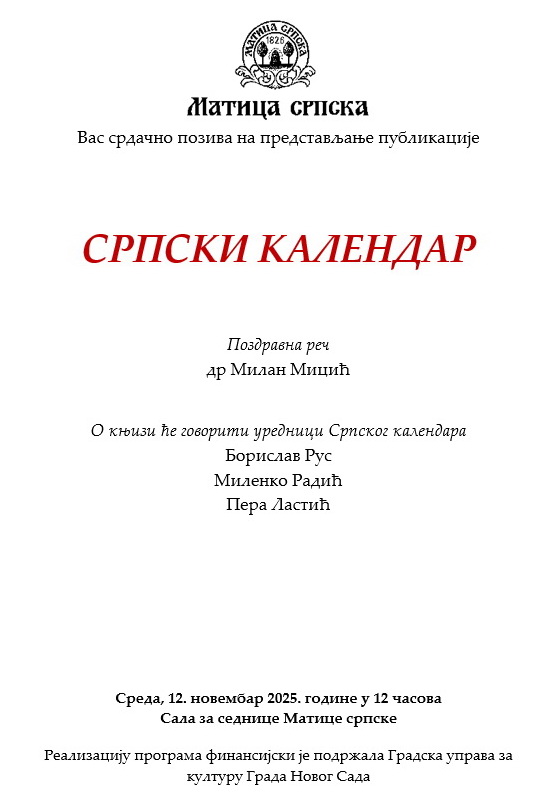 Представљање „Српског календара“, Сала за седнице Матице српске, 12.11.2025. у 12h Posted on November 4, 2025 by milan | Leave a reply