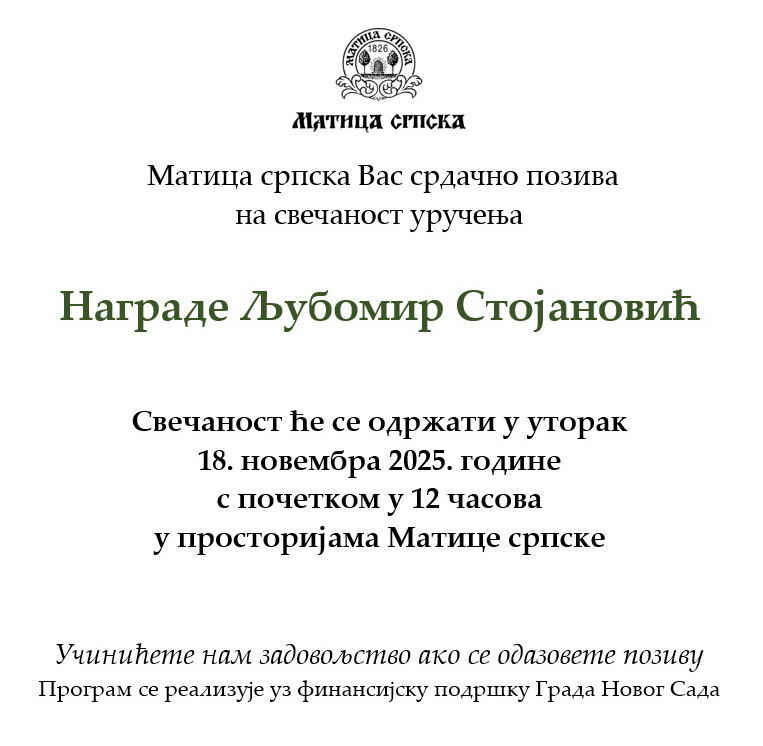Свечаност уручења награде “Љубомир Стојановић”, 18.11.2025. y 12h Posted on September 23, 2025 by milan | Leave a reply