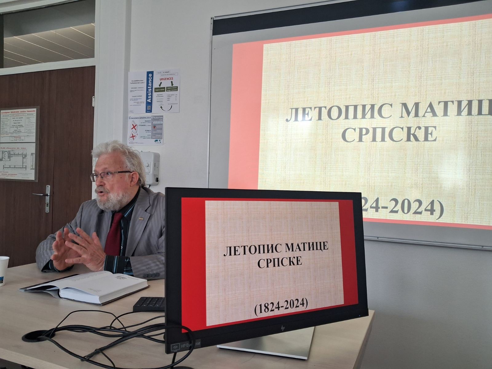 Председник Матице српске проф. др Драган Станић био је гост Славистичког департмана у Стразбуру и имао два наступа. У четвртак 16. априла 2026. године одржао је на српском језику предавање о Матици српској и њеној сложеној делатност током два века трајања. Присуствовали су студенти који уче српски језик и књижевност на курсевима др Ливије Екмечић, а после излагања проф. Станића студенти су постављали питања и учествовали у живом разговору.