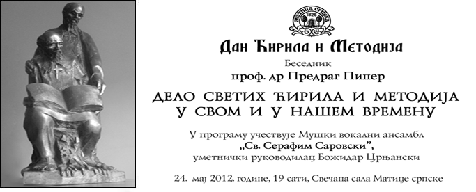 Уторак, 13. децембар 2011. године, 12 часова, Свечана сала Матице
