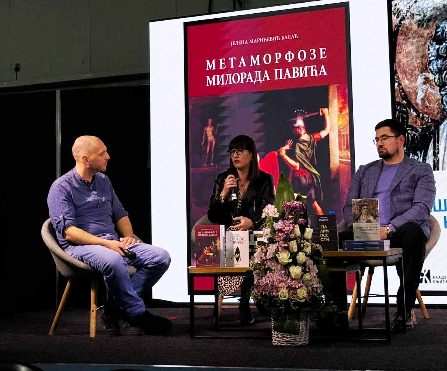 У среду, 18. марта, на Сајму књига у Новом Саду представљена је монографија „Метаморфозе Милорада Павића: Павићу, књига дубоке радости тумачења” Јелене Марићевић Балаћ. О књизи је говорила ауторка доц. др Јелена Марићевић Балаћ, а разговор је водио Ивица Кузмановић. Књига је настала на основу докторске дисертације „Барок у белетристичком опусу Милорада Павића”, значајно проширене и обогаћене новим истраживачким увидима. У њој се отварају нови кругови читања и тумачења Павићевог дела, који обухватају ренесансни аспект његове поезије и прозе, као и сложене релације са другим писцима, филозофским идејама и филмском уметношћу. Ова књига представља значајан допринос савременим проучавањима српске књижевности и још једном потврђује сложеност, богатство и трајну вредност опуса Милорада Павића.